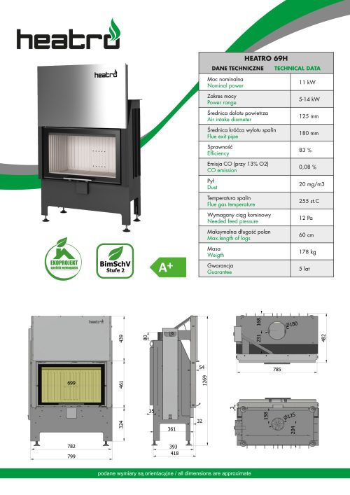 Descoperiti Focar Heatro 69H, insertul de semineu care imbina performanta exceptionala cu un design elegant, creand o atmosfera calda si primitorie in orice spatiu de locuit. Construit din materiale de inalta calitate si dotat cu tehnologie avansata, Focar Heatro 69H este alegerea perfecta pentru cei care cauta eficienta energetica, durabilitate si o vedere spectaculoasa a focului arzand. Focar Heatro 69H este fabricat din otel robust, garantand longevitate si rezistenta in timp. Suprafata sa exterioara este finisata meticulos pentru a oferi un aspect modern si atragator. Cu dimensiuni compacte, Focar Heatro 69H se integreaza usor in diverse configuratii interioare, fie ca este vorba de o casa traditionala sau de un apartament contemporan.